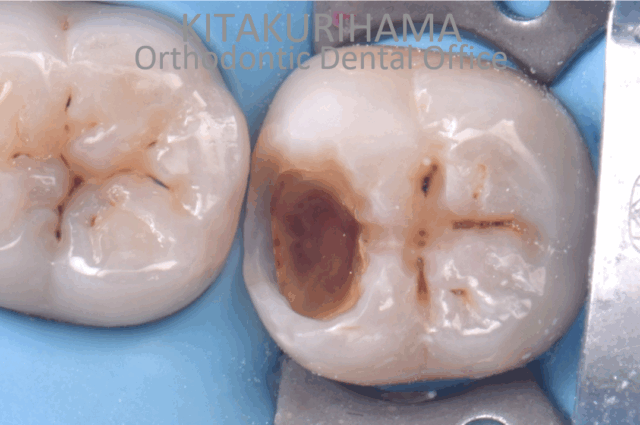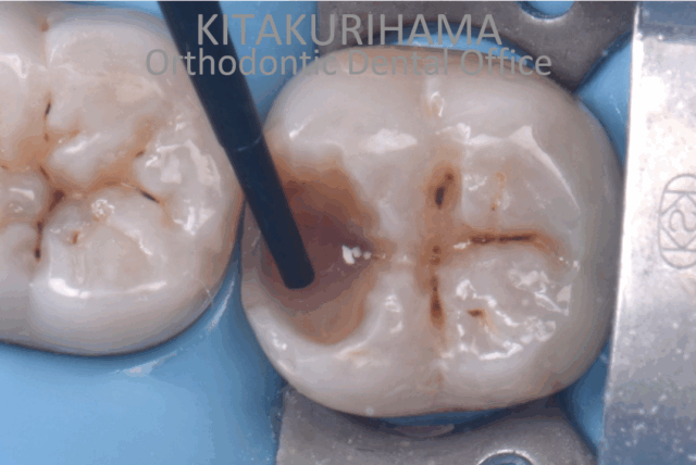 欧米ではこのような大きな穴に対してダイレクトボンディングを行う場合はファイバー状の繊維が予め配合された材料を使うことで歯の破折からの予防を図る治療が主流となってきました。